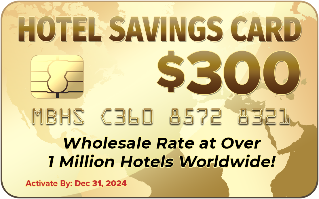 The Hotel Savings Card will provide you with cash credits to be applied to your next getaway!